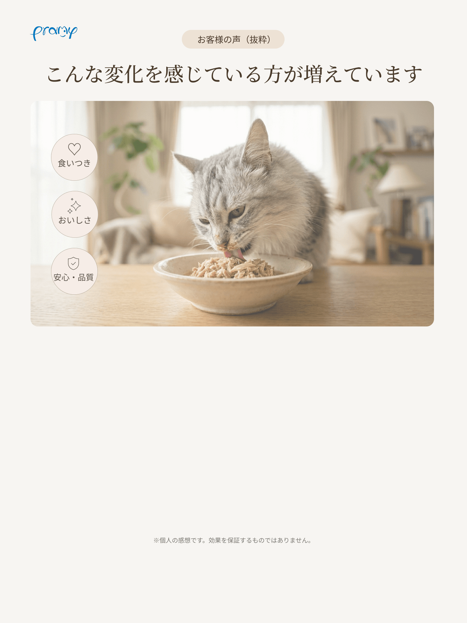 プラミーは、愛猫の健康をサポートします。