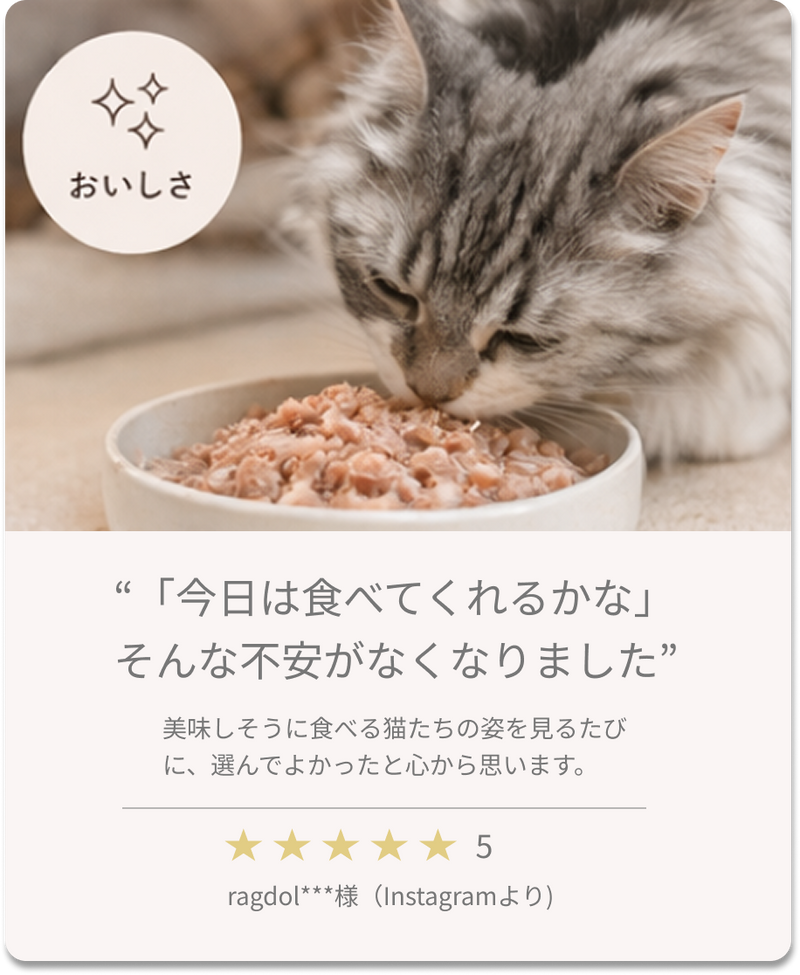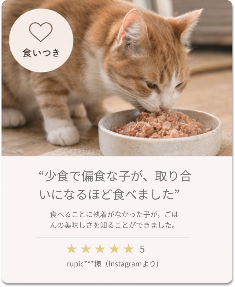 03 新鮮パウチで栄養満点、猫大喜び