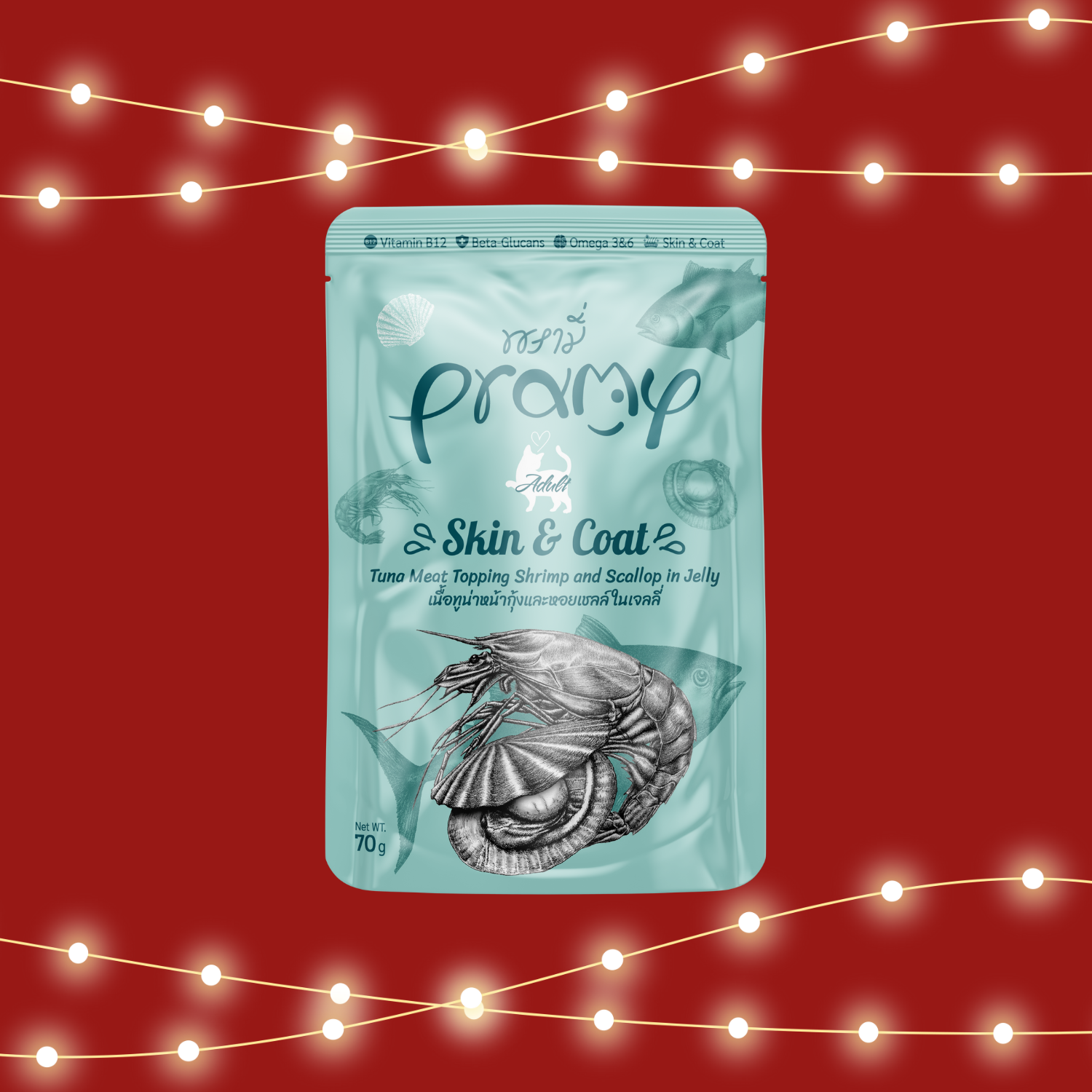 皮膚と被毛のケアに特化したキャットフードです。太平洋産の天然白身マグロ、新鮮なエビ、ホタテを使用し、健康に必要なビタミンを豊富に含んでいます。人工的な添加物は一切使用せず、毎日安心して与えられる品質にこだわっています。